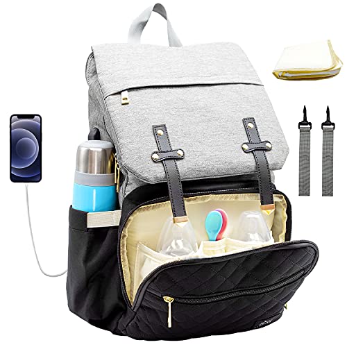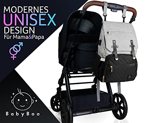 Pomelo Baby Wickeltasche Wickelrucksack Kinderwagenbefestigung in Grau