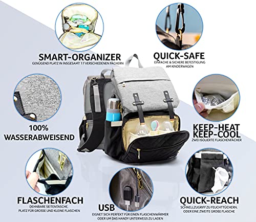 BabyBoo Wickelrucksack mit USB-Ladeanschluss Wickelunterlage