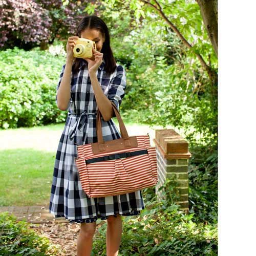 • Babymel Wickeltasche Satchel in Rot mit Streifen