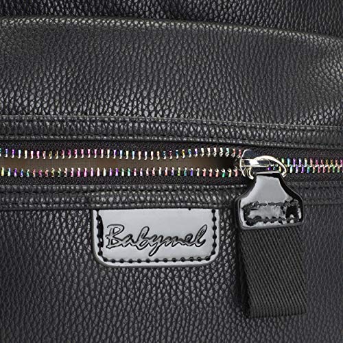 • Babymel BM4492 Luna Windelrucksack aus veganem Leder, Reiserucksack, großes Fassungsvermögen, vegan, schwarz