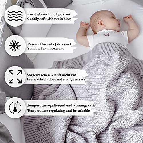 MIRARI Baby Decke Wolldecke gestrickt aus Merino Wolle in Grau