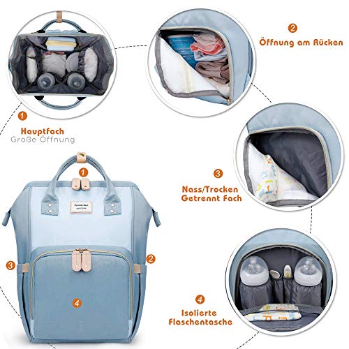 Startseite » Pomelo Best » Baby Wickeltasche Wickelrucksack für Unterwegs in Hellblau