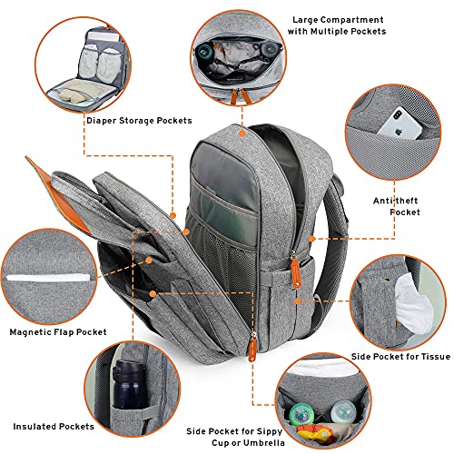 Startseite » Pomelo Best » Pomelo Baby Wickeltasche Wickelrucksack mit Laptopfach in Grau