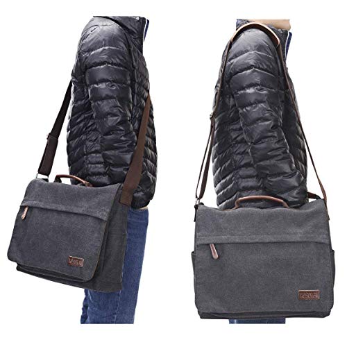 Umhängetasche Herren aus Vintagem Segeltuch, Premium Herrentasche, Laptoptasche für 15,6 Zoll Laptop, Schultertasche/Kuriertasche/Messenger Bag von Ruschen