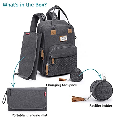 Baby Wickelrucksack Ruvalino inkl. tragbare Wickelauflage in dunkelgrau