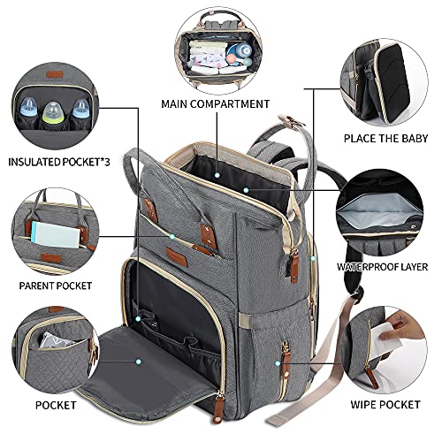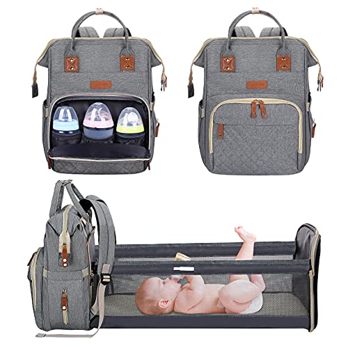 • Pomelo Baby Wickeltasche Wickelrucksack Kinderwagenbefestigung in Grau